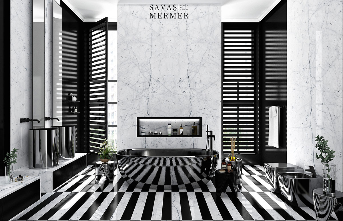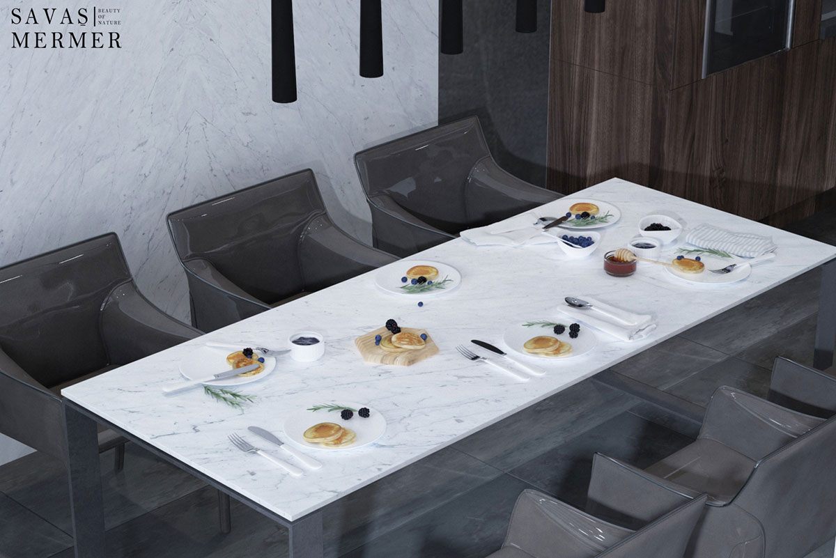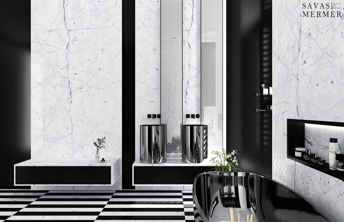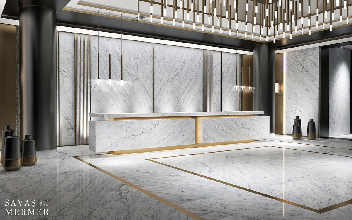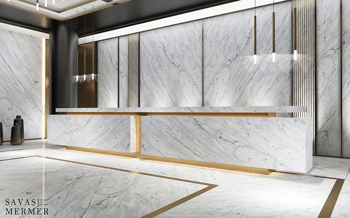 Antik çağlardan beri mermer, lüksün ve geleneğin simgesi olmuştur. Sanattan mimariye kadar çok geniş bir kullanım alanına sahiptir. Bianco Carrara mermer kireçtaşının uzun bir süre boyunca aşırı ısı ve basınca maruz kalmasıyla oluşur. Sonuçta, tüm dünyada mimaride kullanılan muhteşem bir taşa dönüşür. Bianco Carrara mermer, Calacatta mermerden daha ince damarlıdır ve kılcal çizgileri tüm taşa daha gri bir ton verir. Dayanıklılığı ve zarif görünümü, onu çeşitli uygulamalar için uygun kılan temel faktörlerdir. Fakat zarif görünümüne rağmen diğer doğal taşlara göre daha fazla bakım gerektirir. Beyaz mermer, mekanın türüne veya istenen tasarıma göre çeşitli şekillerde yüzey işlemleri yapılabilir.